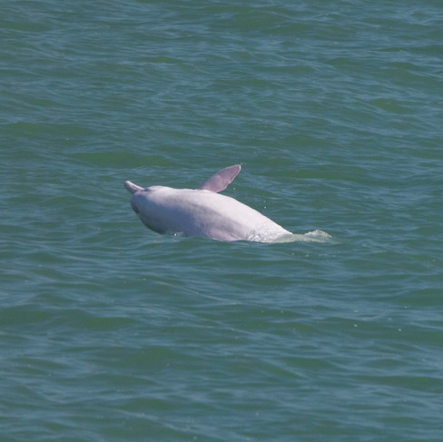 An adult Chinese white dolphin is white or pink, and as these photos show some of the population along the Chinese coast have pink skin. These animals are warm blooded mammals, weigh c200kg, and they can live for around 40 years. They come up to the surface to breath every two to eight minutes and as Thomas helpfully pointed out, they normally come up twice in succession to breath before diving again, which helps get the photos of this challenging subject.